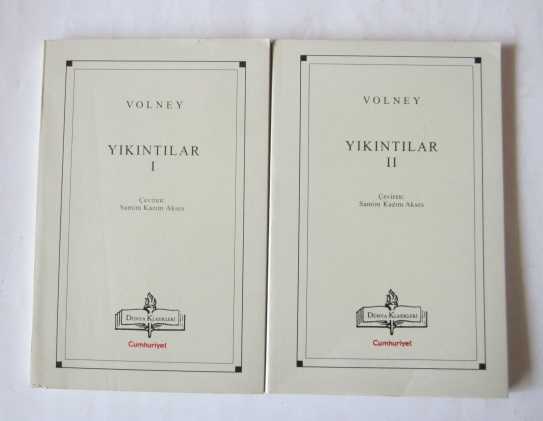 Yıkıntılar, Cilt: I - II / Les Ruines, Volney tarafından kaleme alınmıştır. Kitap 1999 yılında Cumhuriyet tarafından [İstanbul] yayınlanmıştır. Bu baskının çevirisi Samim Kazım Akses tarafından yapılmıştır. 238 sayfadır. Yıkıntılar, Cilt: I - II / Les Ruines adlı eser Türkçe dilindedir.
