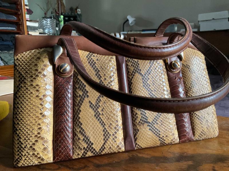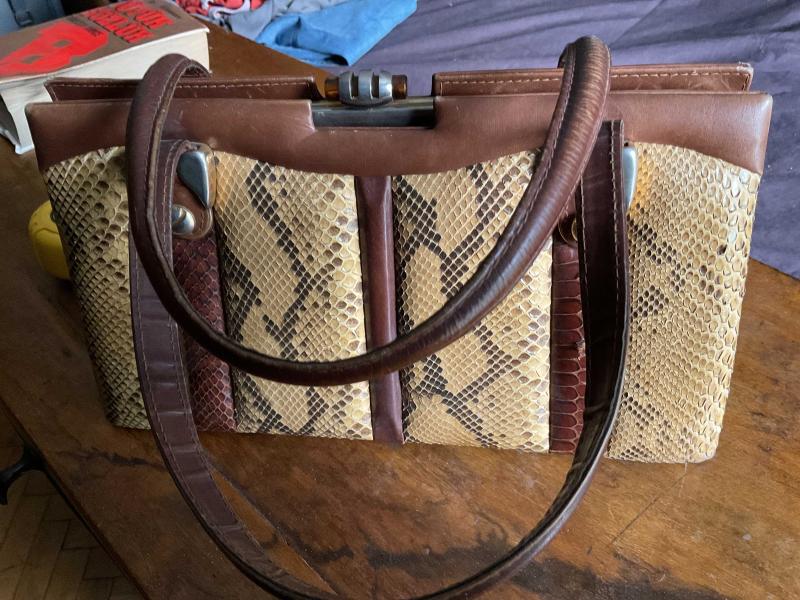 Gerçek yılan derisi ve deri kadın çantası, vintage