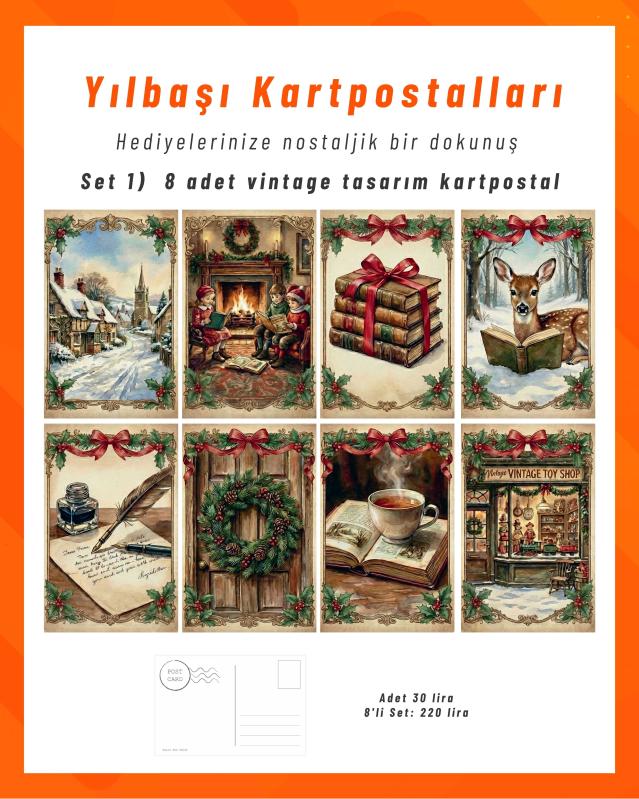 Yılbaşı Kartpostalları / Set 1 / 8 adet vintage tasarım kartpostal, 4 gün önce satışa sunulmuştur.