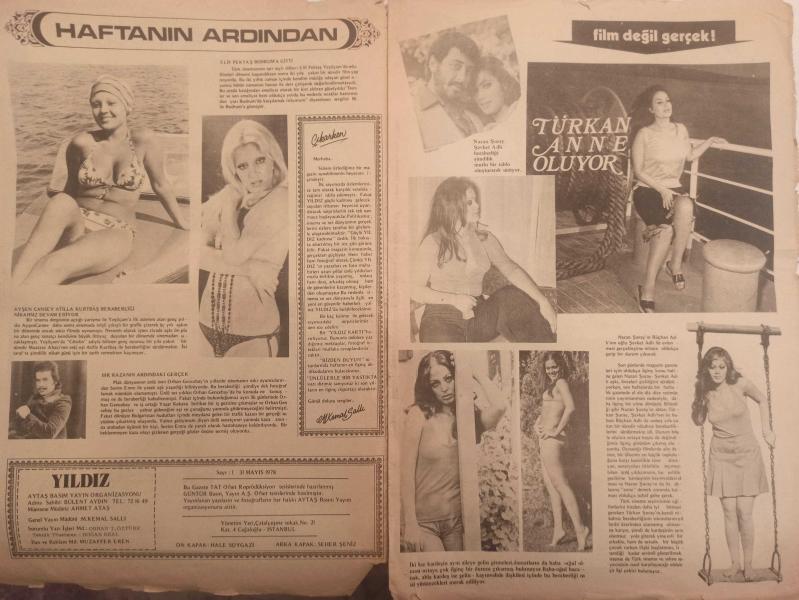 Yıldız Haftalık Magazin Sinema Müzik Televizyon Ve Gençlik Dergi Gazetesi - 31 Mayıs 1978 - Sayı:1 - Hale Soygazi - Seher Şeniz - Elif Pektaş - Ayşen Cansev - Muazzez Abacı - Orhan Gencebay - Sevim Emre - Yaşar Kekava - Nazan Şoray - Şevket Adlı - Rüçhan Adlı - Sophia Loren - Gamze Öz - Erdinç Öz - Muzaffer Eren - Ahu Tuğba - Recep Kaymak - Işıl Yücesoy - Halit Çelikoğlu - Zeki Müren - İsmet Nedim - Melike Umay - Seçil Heper fotoğraf ve haberi - Dergi Tam Değildir Sadece 8 Sayfası Mevcuttur Yıpranma, sararmalar, kupon kesiği ve yırtılmalar zamana bağlı olarak görülebilir