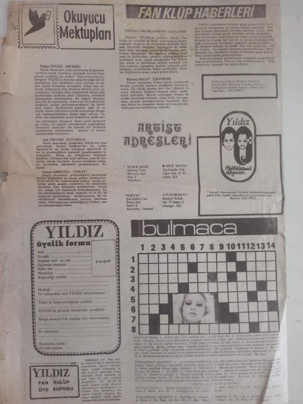 Yıldız Sinema, Tiyatro ve Magazin Dergisi - 1980 Yılı - Banu Alkan - Türkiye'de Şimdiye Dek Böyle Bir Yıllık Yapılmadı - Öztürk Serengil'in Yeni Sevgilisi ''Şölen'' Seks Filmlerinde Oynuyor - Fotoroman - Okuyucu Mektupları - Fan Klüp Haberleri - Artist Adresleri - Mektuplaşmak İsteyenler - Bulmaca - Yıldız Üyelik Formu fotoğraf ve haberi - Dergi Tam Değildir Sadece 4 Sayfası Mevcuttur Yıpranma, sararmalar, kupon kesiği ve yırtılmalar zamana bağlı olarak görülebilir