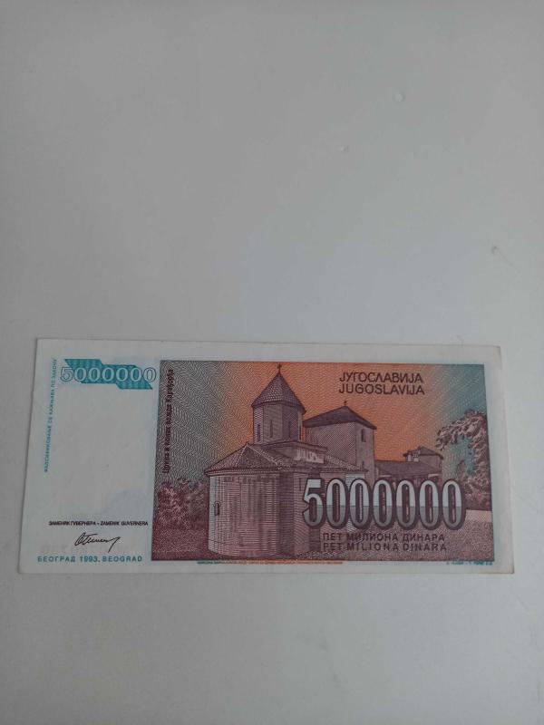 Yugoslavya 5M Dinar 1993 Çil, bir ay önce satışa sunulmuştur.