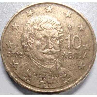 Yunanistan 10 euro sent, 2002 - İlk Basım - Rigas Fereos Portreli - Darphane işareti "F" - Pessac, Fransa, bir ay önce satışa sunulmuştur.