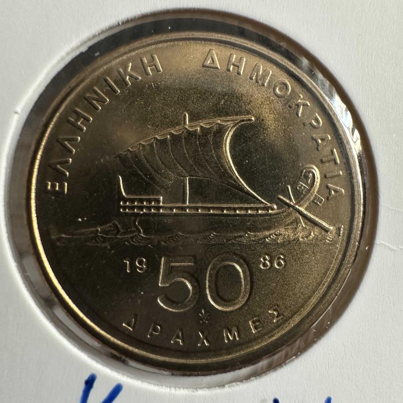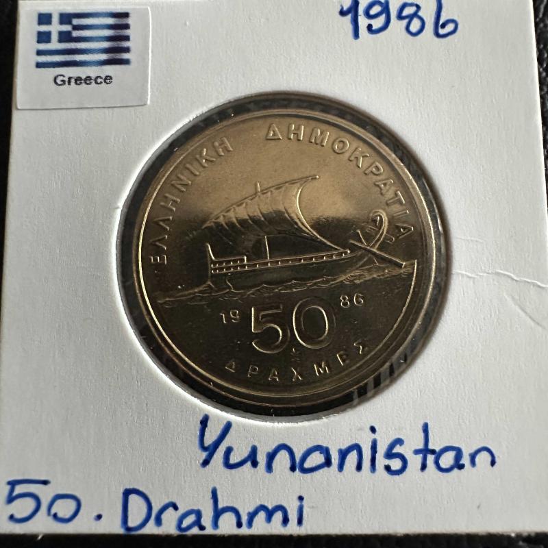 Yunanistan 50 Drahmi 1986. Bayraklı Kapamasında. Çil., 2 ay önce satışa sunulmuştur.
