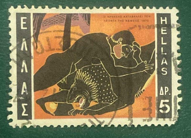 Yunanistan Pulu - Greek Stamp - Postadan Geçmiş Pul Filateli - Herkül ve Nemea Aslanı, Yunan Mitolojisi Serisi Temalı Pul , 5 PARA - YABANCI PULLAR - NOSTALJİK DOĞUM GÜNÜ HEDİYESİ