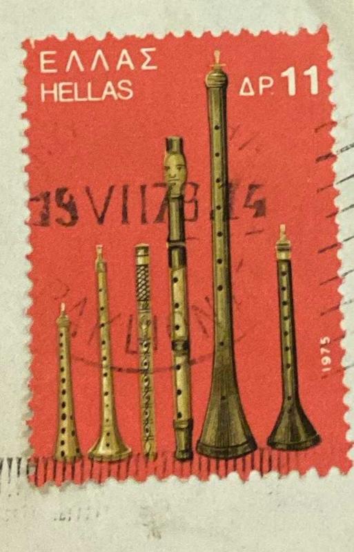 Yunanistan Pulu - Greek stamp - Mektup Zarfından Kesilmiş / Postadan Geçmiş Pul Filateli - 19.VII.1979 Damgalı - ENSTRÜMAN TEMALI YUNAN PULU 1975, 11 PARA - YABANCI PULLAR , NOSTALJİK DOĞUM GÜNÜ HEDİYESİ, en son 1 yıl önce güncellenmiştir.