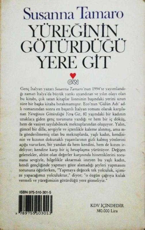 Yüreğinin Götürdüğü Yere Git adlı eser, Kitap > Edebiyat, Kurgu > Diğer kategorisinde İkinci El olarak satıştadır.