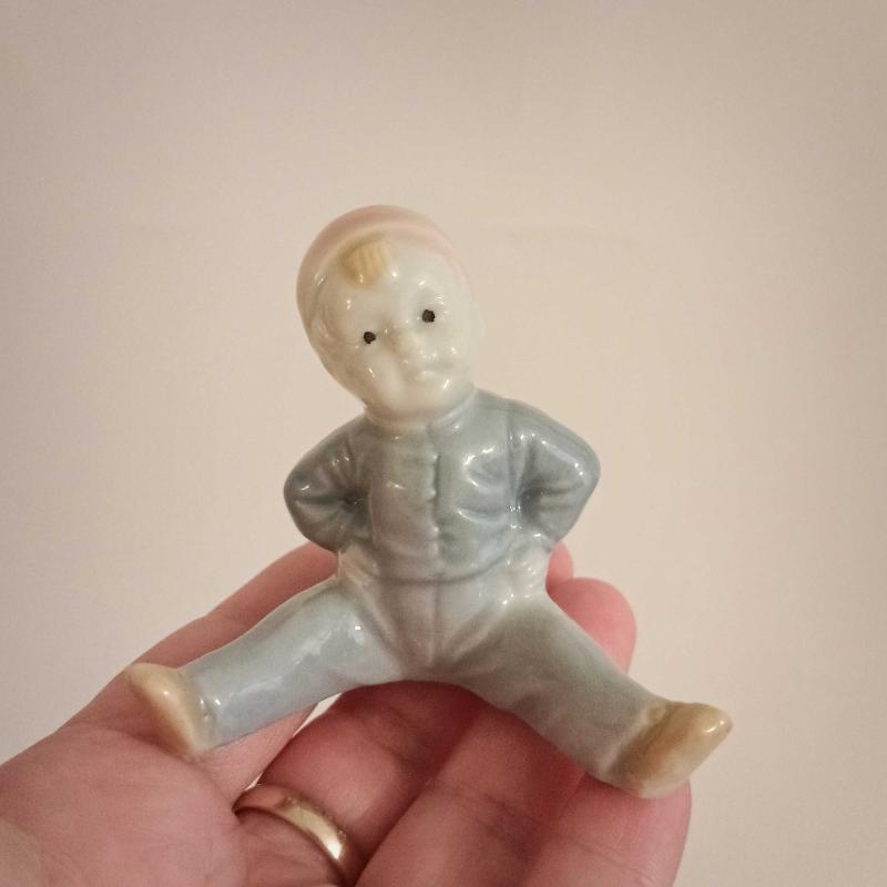 Yüzyıl ortasından küçük bir adam, nostaljiyi yumuşacık bir sıcaklıkla getiriyor. Detaylar: •1945–1965 arası, Almanya / Doğu Avrupa üretimi •Hummel popülaritesinden esinlenen küçük atölye işi •Porselen, parlak sırlı •Boyu 6 cm •Damgasız •Oturan çocuk figürü Not: Alman porselen estetiğini sevenler ve küçük biblo koleksiyonu yapanlar için ideal. Tüm ürünler vintage/ikinci eldir; dönemine bağlı ufak yaş izleri olabilir. Bu doğal izler, parçanın karakterine zarafet katar. . . . #vintagebiblo #porcelainfigurine #hummelstyle #midcenturydecor #antikdekor #collectibles #nostaljikparçalar #sittingboy #boyfigurine #vintagefigurine