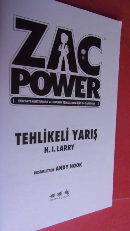 ZAC POWER TEHLİKELİ YARIŞ, H.I.LARRY tarafından kaleme alınmıştır. Kitap 2015 yılında CARETTA ÇOCUK tarafından [isatanbul] yayınlanmıştır. Bu baskının çevirisi NEŞE AKIN tarafından yapılmıştır. 89 sayfadır. ZAC POWER TEHLİKELİ YARIŞ adlı eser Türkçe dilindedir.