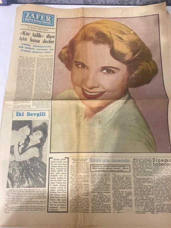 ZAFER GAZETESİ HAFTA SONU İLAVESİ DOĞUM GÜNÜ HEDİYESİ- 28 ŞUBAT 1954 - TURKİSH NEWSPAPER -Esat Ataç-Mona Freeman-Edgar Poe-Suna Korad-Sadi Günel-Refik Halid Karay-Orhan Kemal Yüregir-M. Şerif Alyanak-George Severo-Danielle Darrieux-Marlon Brando-Marlene Dietrich-Orhan Günek-Agatha Christie-Müzehher Conker-Zeki Rıza Sporel Kör talih diye işte buna derler-İki sevgili-Kaşla göz arasında-Sinema haberleri-Tiyatro Opera Sanatkârlarımız Suna Korad-Bir mevsim sohbeti-Bir şiirin hikayesi-Hikaye Kıskançlık-Hayatımın en zor dakikaları-Kısa sinema haberleri-Sinemanın dehşet çocuğu-Yeni çevrilen filmler-Her dem taze büyük anne-Kore’de kızılların elinde-İtalyanların kendilerine mal etmek istedikleri Türk artisti Orhan Günek’in başarıları-İstanbul sanat aleminde-Meşhur Danielle Darrieux pazar kronikleri-İmzasız mektupların esrarı-Dünya nelere gülüyor-Beşiktaş 3 Adalet 1-Hacettepe Güneşi 4-2 yendi-D. Spor A. Gücüne 5-4 galip geldi-Hakimiyet kupası futbol maçlarına dün başlandı-Balkan talebe spor festi adlı eser, Kitap > Süreli Yayınlar > Gazeteler > Türkiye > Genel > Günlük kategorisinde İkinci El olarak satıştadır.