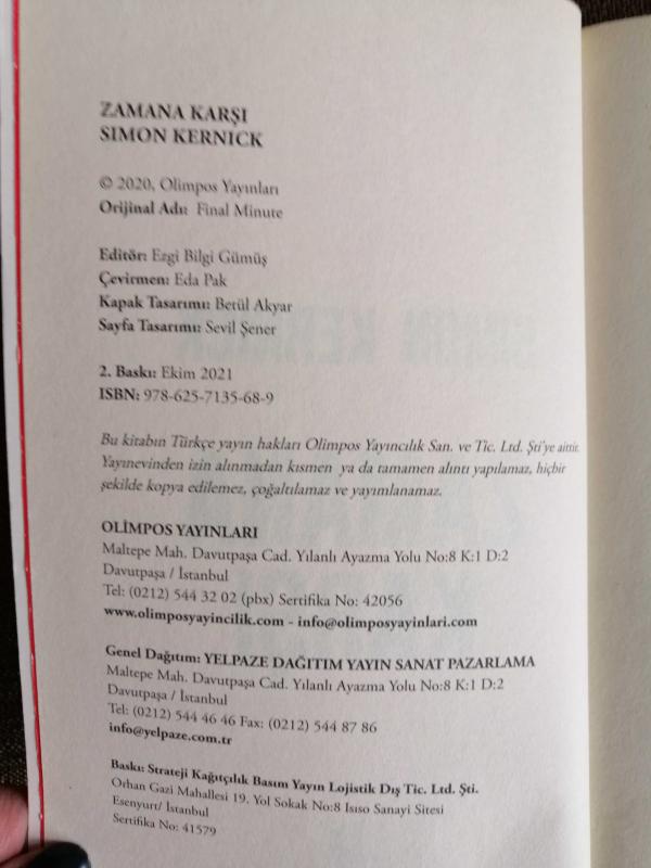 ZAMANA KARŞI adlı eser, Kitap > Edebiyat, Kurgu > Polisiye, Cinai > Dünya Edebiyatı > Diğer Dünya Polisiyesi kategorisinde İkinci El olarak satıştadır.
