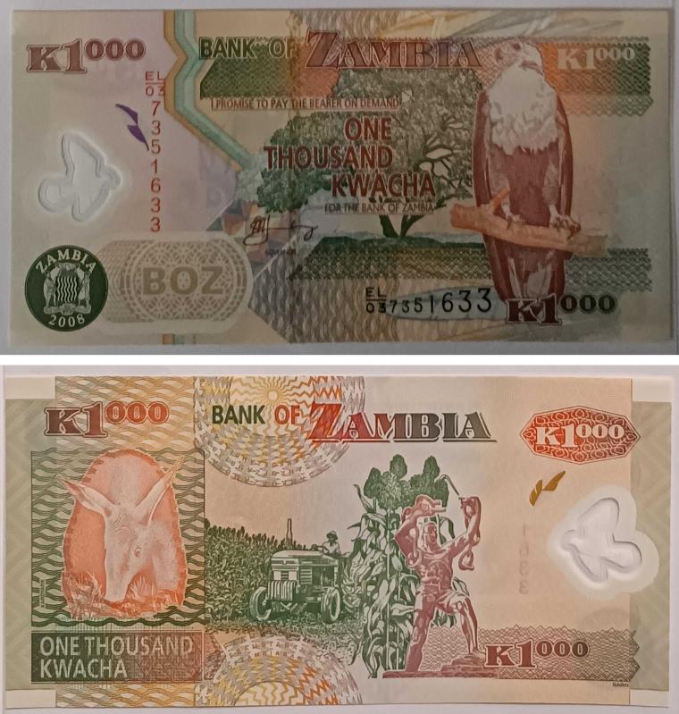 Zambia Zambiya 1000 Kvaça 2008 ** RESİMDEKİ ÜRÜN SATIŞTADIR **
