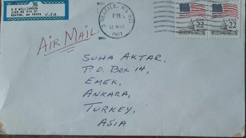 ZARF - MEKTUP - 2 PULLU DAMGALI KAŞELİ - USA 1987, en son 2 ay önce güncellenmiştir.