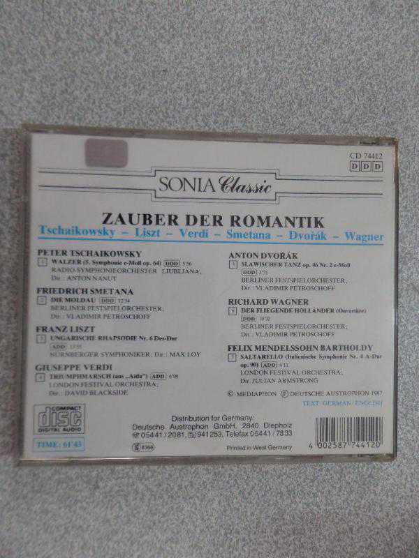 ZAUBER DER ROMANTIK TSCHAIKOWSKY - LISZT - VERDI - SMETANA - DVORAK - WAGNER - CD başlıklı ürün, Efemera, Müzik, Sinema > Müzik, Plak, Kaset, CD > Müzik CD'si > Yabancı Müzik CD kategorisi altında İkinci El olarak satılmaktadır.