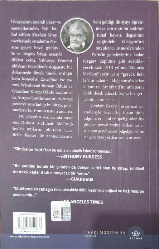 ZAVALLILAR, ALASDAIR GRAY tarafından kaleme alınmıştır. Kitap 2025 yılında İTHAKİ YAYINLARI tarafından [İSTANBUL] 9786052652633 ISBN kodu ile yayınlanmıştır. Bu baskının çevirisi Süha Sertabiboğlu tarafından yapılmıştır. 336 sayfadır. Sayfa bilgisi 2. Hamur olarak belirtilmiştir. ZAVALLILAR adlı eser Türkçe dilindedir.