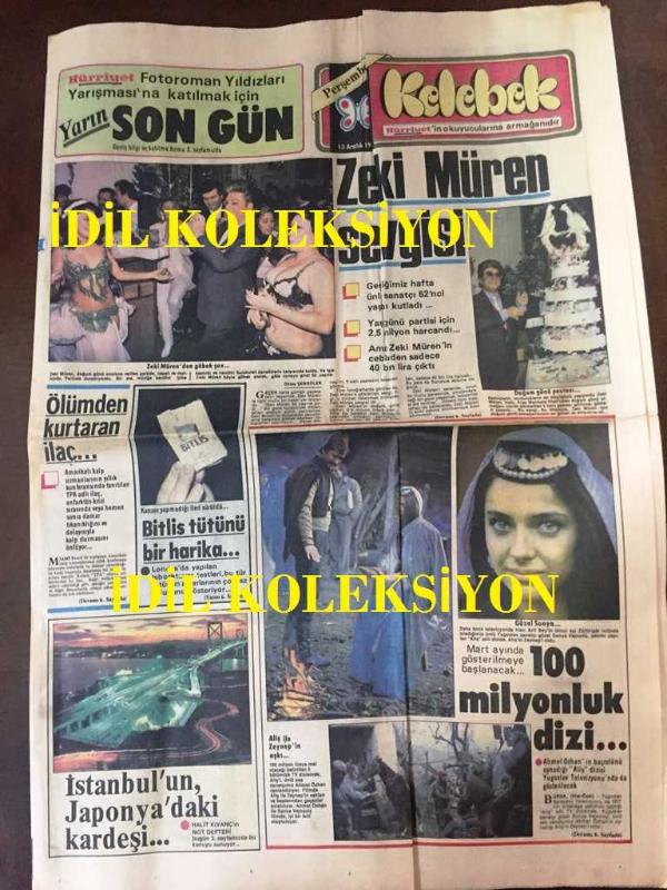 ZEKİ MÜREN 52'NCİ YAŞINI KUTLADI, ZEKİ MÜREN DOĞUM GÜNÜ PASTASI KESERKEN VE DANS EDERKEN, 13 ARALIK 1984 KELEBEK GAZETE, SONYA VEJNOVİÇ, ALİŞ İLE ZEYNEP, ''TUTKU, FOTOROMAN'' HÜLYA AVŞAR, KENAN KALAV, MERAL ORHONSOY, SAFA ÖNAL, ''MEMO, ZAMAN MAKİNESİ, FOTOROMAN'' - ZEKİ ALPAN, DAMLA COŞKUN, YADİGAR EJDER, HAYRİ CANER, ERSİN BURAK, BİLGİSAYAR TARTIŞMASI, HALİT KIVANÇ, ALPAGO, SİHİRLİ YAKUT, ÇİZGİROMAN, NASTASSIA KINSKI HAREM'DE, AHMET ÖZHAN, ''İNTİKAM MELEĞİ, SIDNEY SHELDON, AZİZE BERGÜN'' - ''İŞTE FOTOROMAN, MÜJDAT GEZEN, PERRAN KUTMAN'' - ''FAHRİYE ABLA, FOTOROMAN'' MÜJDE AR, TARIK TARCAN, SAMİM DEĞER ''BİZİMKİLER, ÇİZGİROMAN'' adlı eser Türkçe dilindedir.