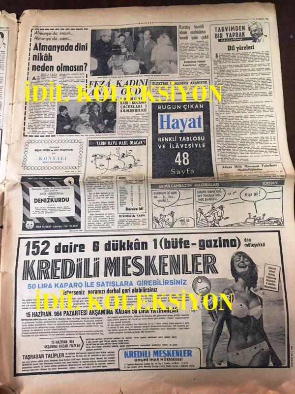 ZEKİ MÜREN, TAKSİM BELEDİYE GAZİNOSU REKLAMI, 11 HAZİRAN 1964 MİLLİYET GAZETESİ, İSMET İNÖNÜ PARTİ LİDERLERİNİ TOPLANTIYA ÇAĞIRDI, TÜRK - YUNAN SAVAŞI TEHLİKESİNE KARŞI AMERİKA KESİN TEDBİR ALIYOR, 51 İŞ ADAMININ YURTDIŞINA KAÇIRDIĞI 51 MİLYON LİRA, EDİRNEKAPI'DA EŞEK MEZBAHASI BASILDI, DR. ÇETİN ÖZEK, YAŞAR KEMAL, AKÇASAZIN AĞALARI, ADNAN TAHİR, DOKTORSUZ KÖYLERDE VEREM, ARÇELİK BUZDOLABI REKLAMI 60'LAR, ALAIN DELON & JANE FONDA, TELEFUNKEN RADYO REKLAMI, MELEN, KONSORYUM BAŞKANI İLE GÖRÜŞTÜ, GALATASARAY - ANKARAGÜCÜ TÜRKİYE KUPASI MAÇI, NECMİ TANYOLAÇ, HALİT KIVANÇ adlı eser, Kitap > Süreli Yayınlar > Gazeteler > Türkiye kategorisinde İkinci El olarak satıştadır.