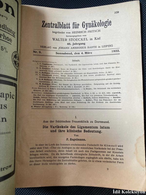 ZENTRALBLATT FÜR GYNAKOLOGİE - HEİNRİCH FRİTSCH - JOHANN AMBROSİUS BARTH - ALMANCA KİTAP (JİNAKOLOJİ İÇİN MERKEZİ LEVHA) 329/368 Sayfa Arası