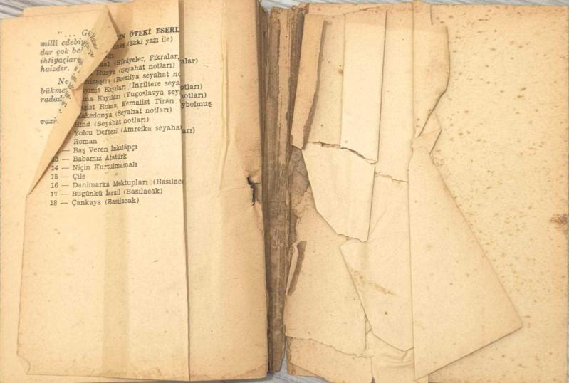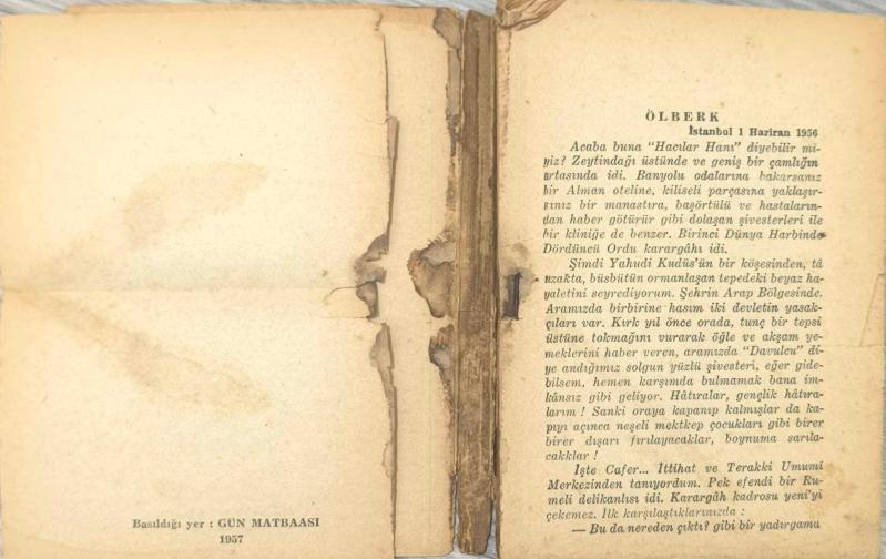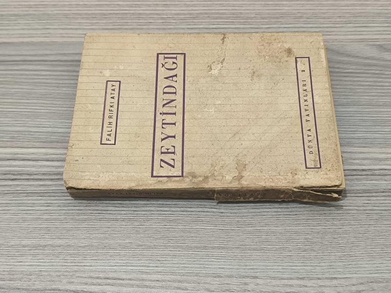 Cumhuriyet dönemi önemli kalemlerinden Falih Rıfkı Atay’ın, Ortadoğu gözlemlerini ve tarihsel analizlerini içeren dikkat çekici eseri Zeytindağı, erken dönem baskılarından biri olan 1957 Gün Matbaası nüshasıyla. Eserde, Osmanlı’nın son dönemine ve Ortadoğu coğrafyasına dair izlenimler güçlü bir anlatımla aktarılmaktadır. Atay’ın gazeteci kimliğiyle kaleme aldığı bu eser, hem tarih hem de hatırat türüne ilgi duyan okurlar için önemli bir kaynaktır. Bu nüsha, koleksiyonluk kondisyonun altında olup daha çok okuma amaçlı veya restorasyonluk bir örnektir.Kitap oldukça yıpranmış durumdadır. Sırt kısmı dağılmış ve cilt bütünlüğü bozulmuştur. Künye sayfası ciltten kopuk olup, sayfalarda yer yer yırtıklar, kopmalar ve eksikler bulunmaktadır. Kağıtlarda lekelenme, deformasyon ve yaşa bağlı yıpranmalar mevcuttur. Bu nedenle eser koleksiyonluk durumda olmayıp, okuma nüshası veya restorasyon amaçlı olarak değerlendirilebilir.