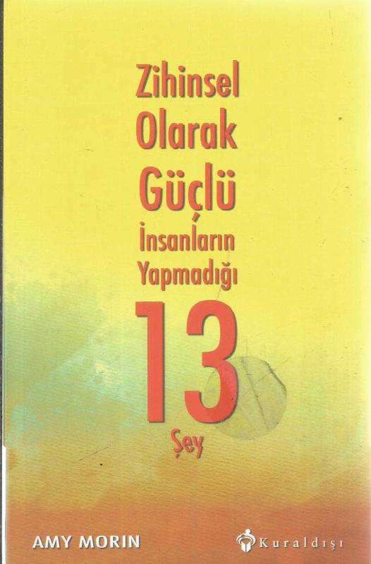 ZİHİNSEL OLARAK GÜÇLÜ İNSANLARIN YAPMADIĞI 13 ŞEY, AMY MORIN tarafından kaleme alınmıştır. Kitap 2015 yılında Kuraldışı Yayıncılık tarafından [İSTANBUL] yayınlanmıştır. Bu baskının çevirisi SEDA TOKSOY tarafından yapılmıştır. 241 sayfadır. ZİHİNSEL OLARAK GÜÇLÜ İNSANLARIN YAPMADIĞI 13 ŞEY adlı eser Türkçe dilindedir.