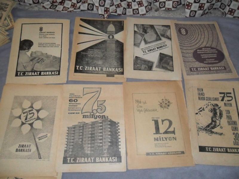 15 ADET ZİRAAT BANKASI REKLAMLARI 1960-66 YILLARIN DERGİLERİNDEN ALINMA ARAS KARGO İLE GÖNDERİLECEK ADINIZA FATURA DA KESİLECEKTİR.
