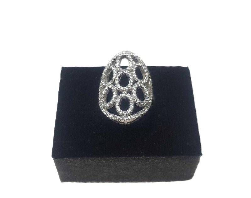 AJUR İŞÇİLİKLİ, ÜZERİ ZİRKON TAŞLARLA SÜSLÜ, HİÇ KULLANILMAMIŞ, 925 AYAR GÜMÜŞ ABİYE YÜZÜK. YÜZÜK İÇ ÇAPI: 17 MM YÜZÜK NUMARASI: 14 AĞIRLIK: 5 GRAM