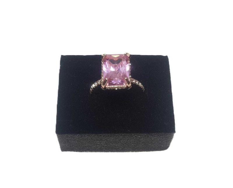 ÜZERİ BÜYÜK BİR PEMBE TAŞ VE ZİRKON TAŞLARLA BEZELİ, KENARLARI KALP FORMLU BİJUTERİ YÜZÜK. 19-20 NUMARA TAÇ EBATI: 1,5 X 1,1 CM