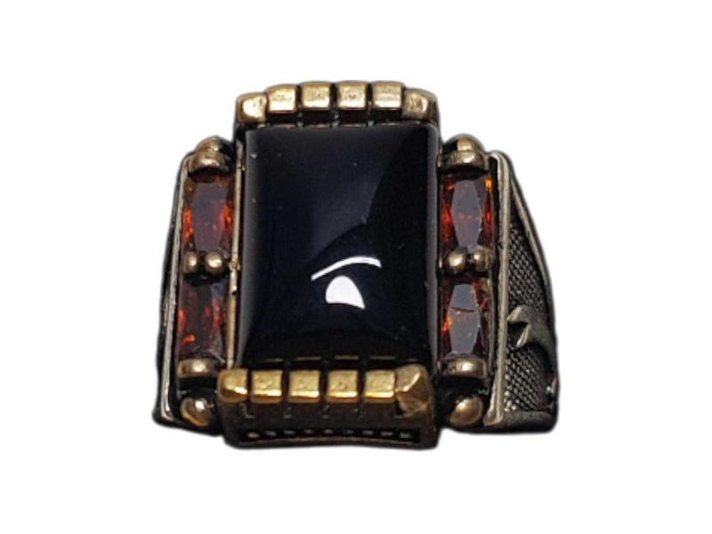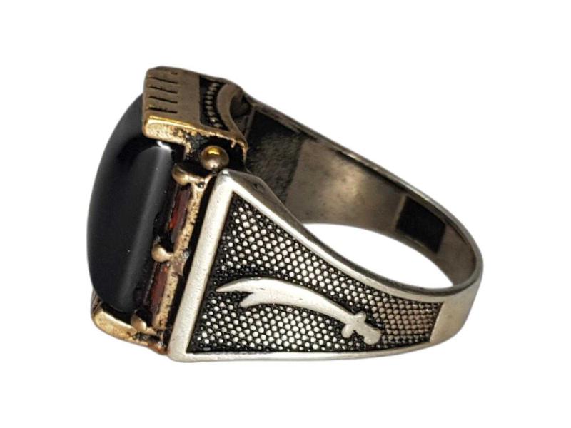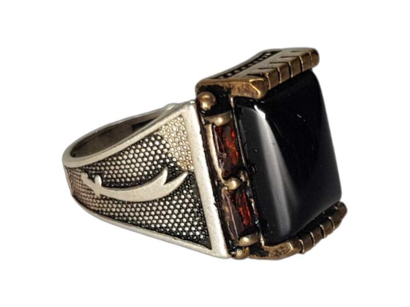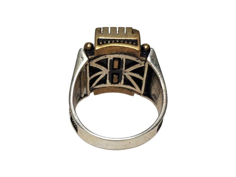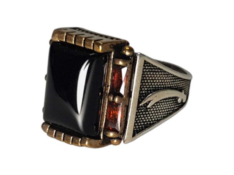 KENARLARI HAZRETİ ALİ'NİN KILICI ZÜLFİKAR TASVİRLİ, TACINDA İSE KAHVERENGİ SİTRİN TAŞLARI BULUNAN, ÖZEL YAPIM, HİÇ KULLANILMAMIŞ 925 AYAR GÜMÜŞ YÜZÜK. AĞIRLIK: 10,8 GR İÇ ÇAP: 19 MM 20 NUMARA