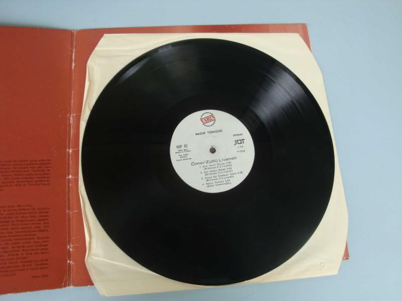 ZÜLFÜ LİVANELİ " Nazım Türküsü " LP Açılır Kapak : 8 Plak : 7,5 YARIN PLAK " Kapak ÇOK TEMİZ , Plak TEMİZ durumda ( B Yüzü birinci şarkıya denk gelen hafif şekilde ısıya maruz kalmış gibi bir durum var-sorunsuz dinleniyor , plağın kalan kısmı gayet iyi durumda ).."