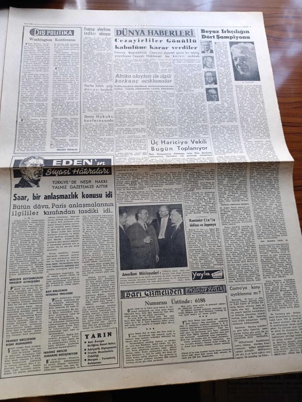 Zafer Gazetesi - 12 Nisan 1960 - Cumhuriyet Halk Partisinin Tahrikleri Devam Ediyor - Ürdün Kralı Hüseyin 14 Nisan'da Türkiye'ye Geliyor - Başvekil Adnan Menderes'in Rusya'yı Kruşçef'in Türkiye'yi Karşılıklı Ziyaretleri - Demokrat Parti Milletin İtimadına Her Zaman Mazhar Olmuştur - İstanbul Hukukunda Diploma Suistimali Tahkik Ediliyor - İtalya'da Tambroni Hükümeti Dün İstifa Etti - Otuz Yıllık PTT'ciler İçin Jübile Yapıldı - Meşhur Sinema Yıldızı Pier Angeli Fotoğraf - Günün Makalesi Silah Yarışı Yazan Dallar Kayıhan - Karanlıktaki Kadın Yazan Frank Slangher Yazı Dizisi - İngiliz Sanatçısı Earl Crawford Geliyor - Anthony Eden'in Siyasi Hatıraları Yazı Dizisi - Beyaz Irkçılığın Dört Şampiyonu - Tek Kurşunla Vurulanlar Yazı Dizisi - Lefter Küçükandonyadis Suat Mamat Ve Antrenör Küçük Halil'e İhtar Var - Milli Ligin 31. Haftasına Yarın Galatasaray Fenerbahçe Karşılaşması İle Başlanacak - Brüksel Otomobil Yarışının Neticeleri - İstanbul'da Milli Lig Saatleri Değiştirildi adlı eser, Kitap > Süreli Yayınlar > Gazeteler > Türkiye > Genel > Günlük kategorisinde İkinci El olarak satıştadır.