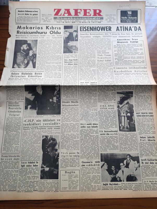 Zafer Gazetesi - 15 Aralık 1959 - Adnan Menderes Endonezya ve İsveç Büyükelçileri İle Görüştü - Amerikan Reisicumhuru Eisenhower Atina'da - Amerikan İran Müşterek Tebliği - Ortadoğu Teknik Üniversitesi İçin 1,5 Milyon Dolar - NATO Genel Sekreteri Paul Henri Spaak'ın Basın Toplantısı - İlk Gastroenteroloji Servisi Dün Açıldı - Şereflikoçhisar'da 8 İlk Okul Daha Açıldı - Dost İran'ın Ordu Günü Kutlandı - Gecekondu Semtlerine Elektrik Ve Su Şebekesi - Prodüktivite Faaliyetini Arttırıyor - Türkiye İş Bankası Adıyaman Şubesi Bugün Açıldı - Endonezya Çin Gerginliği Arttı - Einstein Nazariyesini Tahkik İçin Bir Metod - Şair Kadınlar Toplantısı - İgor Bezrodni Konserleri Operada - Milli Lig'in 17. haftası Galatasaray Fenerbahçe Karşılaşması İle Başlayacak - Okçuluk Ve Eski Türk Sporu Kulübü Kuruldu - Antrenör Necdet Ertem Vefa'dan Tam Selahiyet İstedi - Foto Finiş Makinesinin Yanılmasına İmkan Var mı - adlı eser, Kitap > Süreli Yayınlar > Gazeteler > Türkiye > Genel > Günlük kategorisinde İkinci El olarak satıştadır.