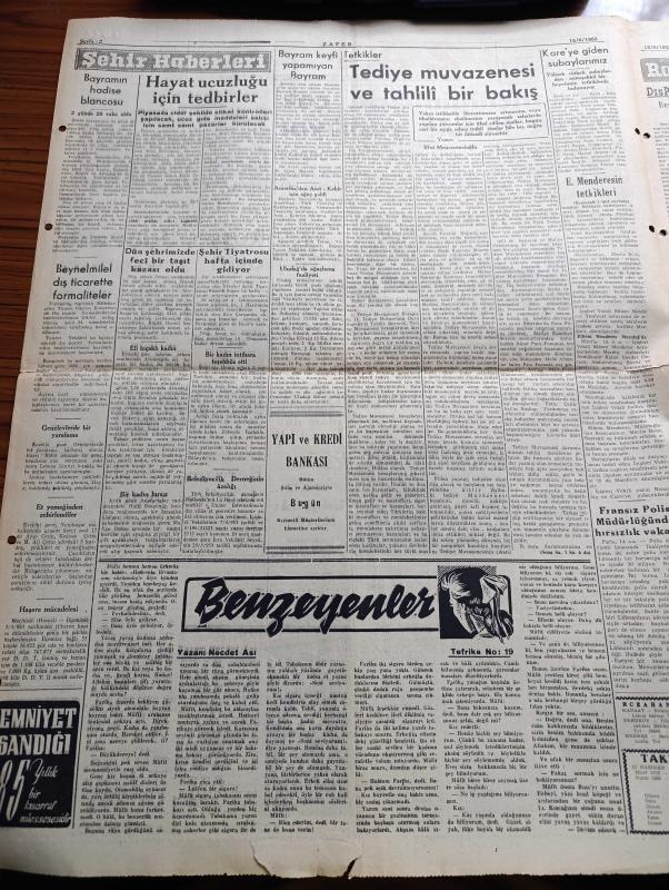 Zafer Gazetesi - 15 Haziran 1953 - Rus Notası İyi Niyeti İspat Eder Mi Yazan Mümtaz Faik Fenik Köşe Yazısı - Fenerbahçe Ankaragücü Maçı 3 3 Maçtan Bir Kare - Madenciliğimizde Çok Büyük Bir Hamle Yapılıyor - Mareşal Tito'nun Son Sovyet Teşebbüsüne Dair Nutku Rusya Üçlü Paktı Asla Sarsamaz - Ritzin Raporuna Göre Yine Naboland Suçlu - Şeker Bayramı - Kore'de Kızıllar Stratejik Noktalara Saldırıyor - Beşiktaş Danimarka'nın Tanınmış Takımı Jutlako'yu Yendi - Benzeyenler Yazan Necdet Asi Yazı işleri - Şehir Tiyatrosu Hafta İçinde Gidiyor - Mısır Başvekili General Necip - Mısırın Yeni Hükümet Şekli - Hong Kong İncisi Anlatan Harry Feller Yazı Dizisi - Milyoner Erkek Nasıl Avlanır Marilyn Monroe'nun Formülü - Amerika Röportajları Yazan Fatin Fuad Yazı Dizisi - Paris'te Yaz Modaları - Kraliçe İkinci Elizabeth Bir Geçit Resminde - Fenerbahçe Takımı Bitkin Durumdadır - At Yarışları Bugünkü Koşular, Mümtaz Faik Fenik tarafından kaleme alınmıştır. Zafer Gazetesi - 15 Haziran 1953 - Rus Notası İyi Niyeti İspat Eder Mi Yazan Mümtaz Faik Fenik Köşe Yazısı - Fenerbahçe Ankaragücü Maçı 3 3 Maçtan Bir Kare - Madenciliğimizde Çok Büyük Bir Hamle Yapılıyor - Mareşal Tito'nun Son Sovyet Teşebbüsüne Dair Nutku Rusya Üçlü Paktı Asla Sarsamaz - Ritzin Raporuna Göre Yine Naboland Suçlu - Şeker Bayramı - Kore'de Kızıllar Stratejik Noktalara Saldırıyor - Beşiktaş Danimarka'nın Tanınmış Takımı Jutlako'yu Yendi - Benzeyenler Yazan Necdet Asi Yazı işleri - Şehir Tiyatrosu Hafta İçinde Gidiyor - Mısır Başvekili General Necip - Mısırın Yeni Hükümet Şekli - Hong Kong İncisi Anlatan Harry Feller Yazı Dizisi - Milyoner Erkek Nasıl Avlanır Marilyn Monroe'nun Formülü - Amerika Röportajları Yazan Fatin Fuad Yazı Dizisi - Paris'te Yaz Modaları - Kraliçe İkinci Elizabeth Bir Geçit Resminde - Fenerbahçe Takımı Bitkin Durumdadır - At Yarışları Bugünkü Koşular adlı eser Türkçe dilindedir.