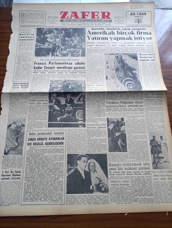 Zafer Gazetesi - 16 Ekim 1959 - Kıbrıs Valisi Sir Hugh Foot'un Verdiği Cevap - Fransız Parlamentosu Sabaha Kadar Cezayir Meselesini Görüştü - Reisicumhur Celal Bayar'ın Libya Meliki Emir Seyit'e Çektiği Telgraf - Tevfik İleri Kız Teknik Öğretmen Okulunun Açılışında Bulundu - Başvekil Adnan Menderes'in Amerika'da Yaptığı Görüşmeler - Polaris Füzesi - Galata Hadisesi Sanıklarının Dünkü Duruşması - Migros'u Soyan Meçhul Hırsızlar - General Kasım'ı Öldürmek İçin Yeni Bir Suikast Projesi - Yüzelli Senelik Mazisi Olan Türk Amerikan sergisi - Kültür Takvimi Hazırlıkları Bitti - Gazeteci İlhami Tansel Evlendi - Radyo Programı - Silahsızlanmada Yeni Bir Amerikan Planı Yok - Kruşçef'in Çinliler İle Münasebetleri İyiymiş - Mareşal Juin'e Göre Komünist Stratejisi - Sineması Olmayan Memleket Sıkkım - Sing Sing'de Baş Gardiyanının Not Defterinden Yazan Johny J. Sheehy Yazı Dizisi - Dünkü At Yarışları - Hacettepe Gençlerbirliği Maçı - Voleybolda İtalya'ya Mağlup Olduk - Fenerbahçe Ankara'ya Geliyor adlı eser, Kitap > Süreli Yayınlar > Gazeteler > Türkiye > Genel > Günlük kategorisinde İkinci El olarak satıştadır.