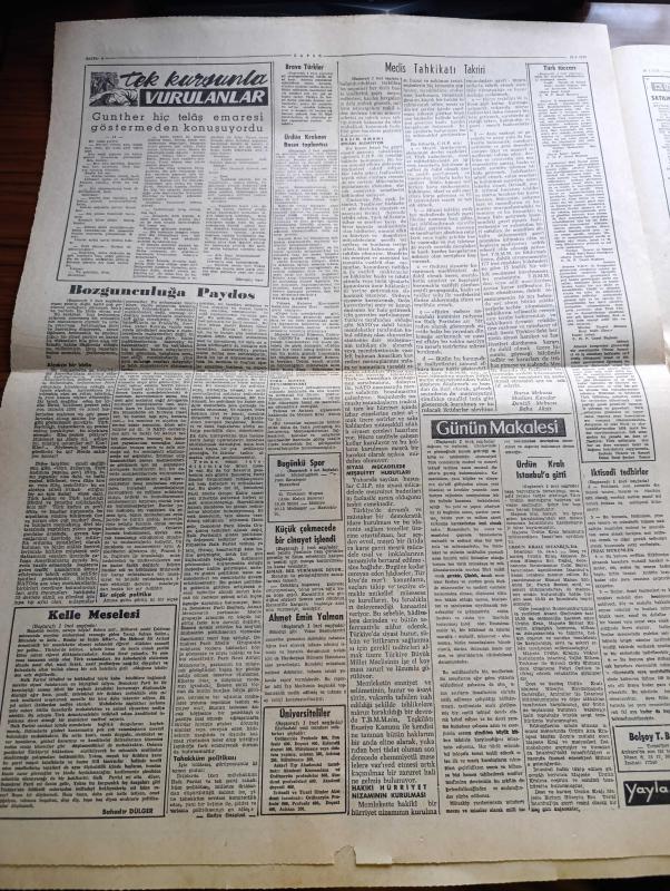 Zafer Gazetesi - 16 Nisan 1960 - Ürdün Kralı Hüseyin'in Basın Toplantısı - Ürdün Kralı Hüseyin İstanbul'a Gitti - Ücretli İzin Kanunu Dün Meriyete Girdi - CHP Siyasi Mücadelede Meşru Hudutları Ziyadesi İle Aşmıştır - Başvekil Adnan Menderes Amasya Ve Güdül Heyetleriyle Görüştü - Kelle Meselesi Yazan Bahadır Dülger - Tüccar Ve Sanayicilerin İsmet İnönü'ye Protestosu - Ahmet Emin Yalman Dün Tahliye Edildi - Meclis Bozgunculuğa Hayır Diyecek - Devrimizin Takdiri Yazan Profesör Doktor Emin Bilgiç - Sabato Visco Madalya Verecek - Anthony Eden'in Siyasi Hatıraları Yazı Dizisi - İtalya'da Buhran Yine Çıkmaza Girdi - Fransız Komünist Partisi Bir Sarsıntı Geçirdi - Fidel Castro'ya Karşı İsyan Mı - Tek Kurşunla Vurulanlar Yazı Dizisi - Galatasaray Şeker Hilal Maçı - Avrupa Genç Takımlar Şampiyonasında İlk Maçımız Batı Almanya İle - Spor Toto'daki İki Birinci 60.940 şar Lira Aldılar - Kabul Edilen Dünya Atletizm Rekorları - Basketbol Hakemi Tevfik Artun Ajan Oldu adlı eser, Kitap > Süreli Yayınlar > Gazeteler > Türkiye > Genel > Günlük kategorisinde İkinci El olarak satıştadır.