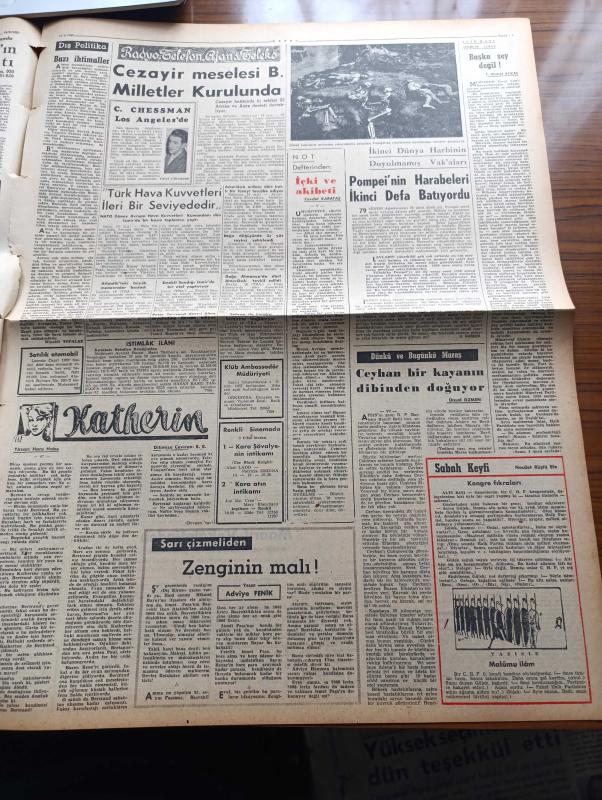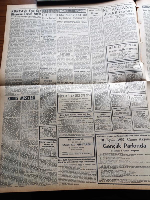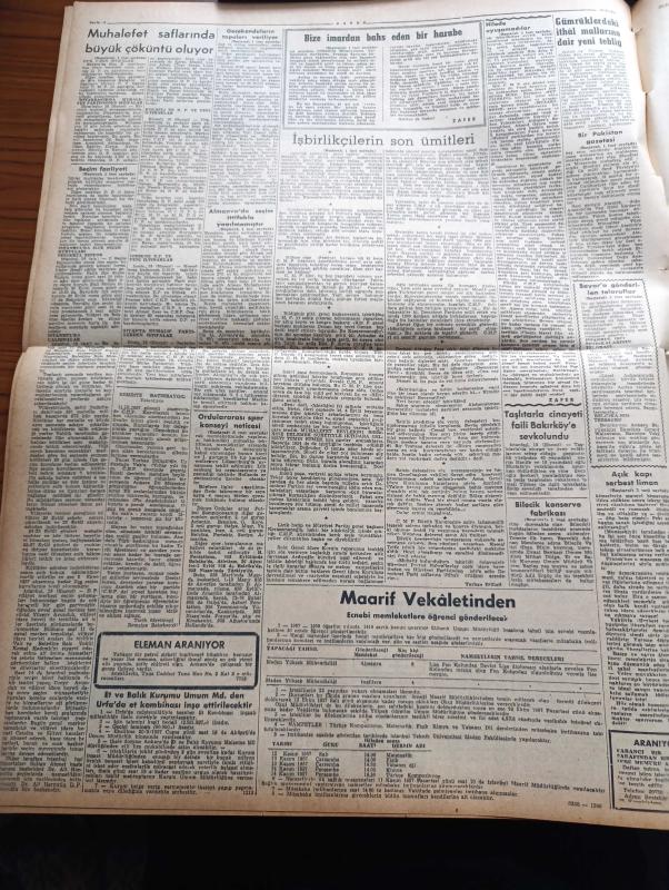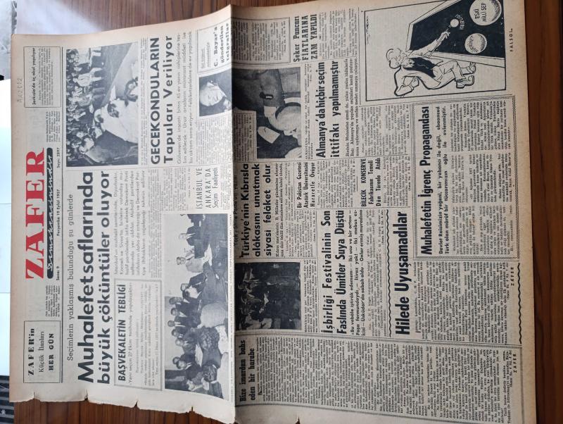 Zafer Gazetesi - 19 Eylül 1957 - Seçimlerin Yaklaşmış Bulunduğu Şu Günlerde Muhalefet Saflarında Büyük Çöküntüler Oluyor - Gecekonduların Tapuları Veriliyor - York Shire Poste'un Yazısı Türkiye'nin Kıbrıs'la Alakasını Unutmak Siyasi Felâket Olur - Pakistan Dawn Gazetesi Atatürk Üniversitesini Hararetle Övüyor - Bilecik Konserve Fabrikasının Temeli Dün Törenle Atıldı - Muhalefetin İğrenç Propagandası - Ankara Sel Felaketi Sebebiyle Celal Bayar'a Gönderilen Telgraflar - İstanbul Ve Ankara'da Seçim Faaliyetleri - Konya'da Yeni Gar Binasının Temeli Atıldı - Beynelmilel Tiyatro Festivali - Mümtaz Tarhan'ın Dünkü İzahatı - Katherin Yazan Hans Habe Yazı Dizisi - Cezayir Meselesi Birleşmiş Milletler Kurulunda - İkinci Dünya Harbinin Duyulmamış Vakaları - Edison Ampul - Ziraat Bankası - Küçük İlanlar - Dünya Ordulararası Spor Konseyi Neticesi - Basketbol Sahasında Faaliyetler - Futbol Hastalığı Yazan Süleyman Tekil- Ankara Karması İçin Çağırılan Boksörler - Galatasaray Beşiktaş Maçı Hazırlığı adlı eser, Kitap > Süreli Yayınlar > Gazeteler > Türkiye > Genel > Günlük kategorisinde İkinci El olarak satıştadır.