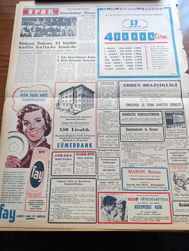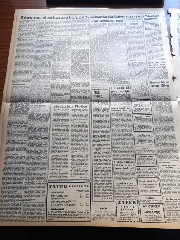 Zafer Gazetesi - 23 Şubat 1957 - Kıbrıs Meselesi Dün Karara Bağlandı - 1957 Bütçesine Haksız Delilsiz Ve Yersiz Hücumlarda Bulunan Muhalefet Layık Olduğu Cevapları Aldı - CHP Muhalefet Olarak Asab Bozucu Tahriklerden Başka Bir Şey Yapmamıştır - Kemal Biberoğlu - Psiko Sosyal Yardımlaşma Cemiyeti - Reisicumhur Dün Ankara Silah Fabrikasını Gezdi - Yüksek Askeri Şura Dün Çalışmalarına Başladı - Adana'da Bir Öğretmen Boğularak Öldürüldü - İsviçre'de Kadınlar Da Rey Verebilecek - Güzel Sanatlar Birliği Resim Sergisi Açıldı - Mimarların Balosu Bu Akşam Verilecek - Kıbrıs Meselesi Birleşmiş Milletlerde Selim Sarper'in Verdiği Beyanat - Film Yıldızı Gene Kelly - Montesi Davası Devam Ediyor - İtalyan Ordu Takımı 34 Kişilik Kafile Halinde İzmir'de - Fenerbahçe Güneşspor Maçı - Gençlerbirliği Otoyıldırım Maçı - Türkiye Boks Birinciliklerine Bugün Harp Okulu Salonunda Başlıyor - Sümerbank - Fay Temizleme Tozu - Belalı Kaptan Filmi Başrolde Henry Fonda James Cagney Ankara Sinemasında - Mason Balosu adlı eser, Kitap > Süreli Yayınlar > Gazeteler > Türkiye > Genel > Günlük kategorisinde İkinci El olarak satıştadır.