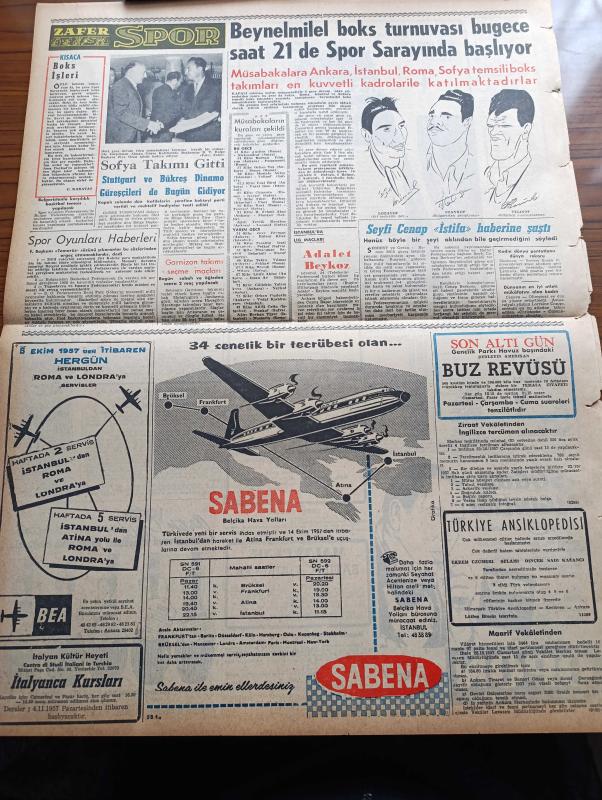 Zafer Gazetesi - 24 Ekim 1957 - Adana Şeker Fabrikasının Da Temeli Dün Atıldı - Fabrika Şeker Kamışı Ve Pancardan Bir Yılda 26 Bin Ton Şeker İstihsal Edecek - New York Times Gazetesi Türkiye'nin Suriye Sınırında Gayesi Tecavüz Değildir - Çorum Çimento Fabrikası Da Bugün Hizmete Giriyor - 130 Vatandaşa Daha Yeni Evleri Verildi - Başvekil Adnan Menderes Ankara'da - İsmailiye Mezhebinin Yeni Reisi Ağa Han - Eski Şöhretlerden Paulette Goddard Evlendi - Eisenhower Mac Millan Mülakatı - Gima Maltepe Mağazası - Katherin Yazan Hans Habe Yazı Dizisi - Florida'dan Hareket Eden Jüpiter Hedefini Buldu - New York'ta Hasılat Kıran Üç Film Mussolinin Metresleri Peron'un Kızları Ve Faruk'un Zevceleri - İdil Biret'in piyano Resitali - Opon Ağrı Kesici - Beynelmilel Boks Turnuvası Bu Gece Saat 21 de Spor Sarayında Başlıyor - Gençlik Parkı Havuz Başında Buz Revüsü - Adalet Beykoz Maçı - Seyfi Cenap Berksoy İstifa Haberlerine Şaştı - Sabena Belçika Hava Yolları - Milli Voleybol Antrenörü Jiri Kobrle, Zühtü Hilmi Velibeşe tarafından kaleme alınmıştır. Zafer Gazetesi - 24 Ekim 1957 - Adana Şeker Fabrikasının Da Temeli Dün Atıldı - Fabrika Şeker Kamışı Ve Pancardan Bir Yılda 26 Bin Ton Şeker İstihsal Edecek - New York Times Gazetesi Türkiye'nin Suriye Sınırında Gayesi Tecavüz Değildir - Çorum Çimento Fabrikası Da Bugün Hizmete Giriyor - 130 Vatandaşa Daha Yeni Evleri Verildi - Başvekil Adnan Menderes Ankara'da - İsmailiye Mezhebinin Yeni Reisi Ağa Han - Eski Şöhretlerden Paulette Goddard Evlendi - Eisenhower Mac Millan Mülakatı - Gima Maltepe Mağazası - Katherin Yazan Hans Habe Yazı Dizisi - Florida'dan Hareket Eden Jüpiter Hedefini Buldu - New York'ta Hasılat Kıran Üç Film Mussolinin Metresleri Peron'un Kızları Ve Faruk'un Zevceleri - İdil Biret'in piyano Resitali - Opon Ağrı Kesici - Beynelmilel Boks Turnuvası Bu Gece Saat 21 de Spor Sarayında Başlıyor - Gençlik Parkı Havuz Başında Buz Revüsü - Adalet Beykoz Maçı - Seyfi Cenap Berksoy İstifa Haberlerine Şaştı - Sabena Belçika Hava Yolları - Milli Voleybol Antrenörü Jiri Kobrle adlı eser Türkçe dilindedir.