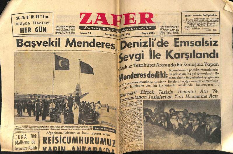 Zafer Gazetesi 25 Eylül 1958 - Başvekil Adnan Menderes, Denizli'de Emsalsiz Sevgi İle Karşılandı - Altes Prenses Şems'e, Altın Madalya Verildi GZ158934, en son 29 gün önce güncellenmiştir.