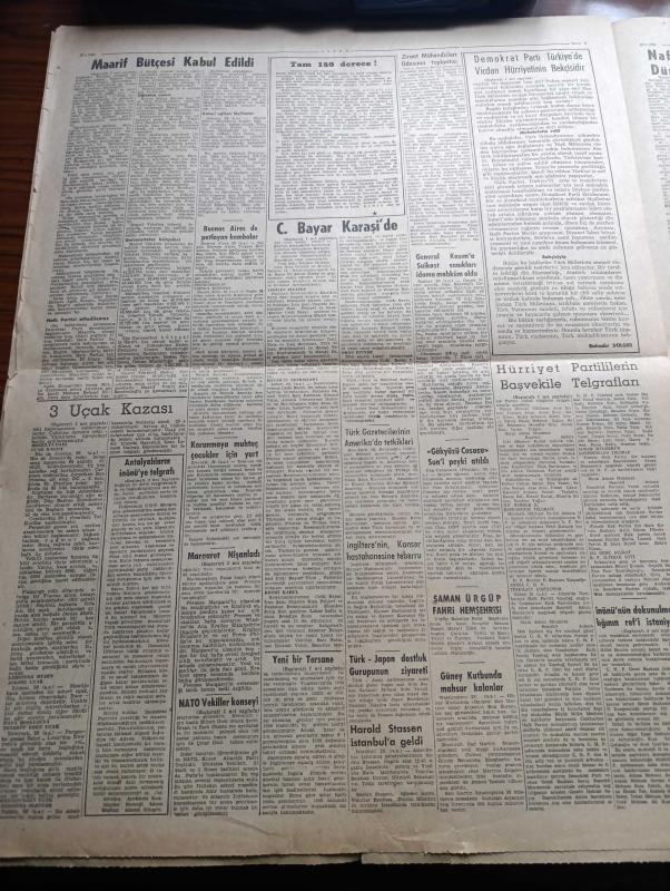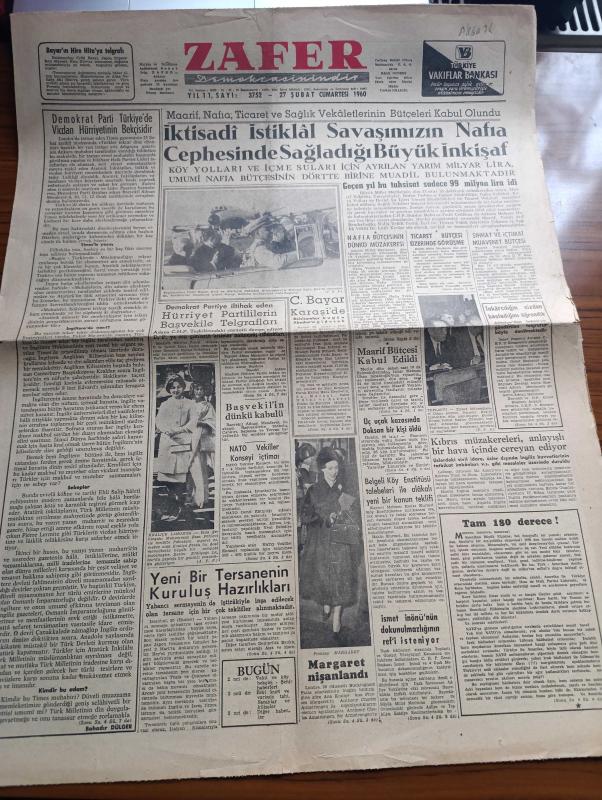 Zafer Gazetesi - 27 Şubat 1960 - Demokrat Parti Türkiye'de Vicdan Hürriyetinin Bekçisidir Yazan Bahadır Dülger Köşe Yazısı - Maarif Nafia Ticaret Ve Sağlık Vekaletlerinin Bütçeleri Kabul Olundu - İktisadi İstiklal Savaşımızın Nafia Cephesinde Sağladığı Büyük İnkişaf - Demokrat Parti'ye İltihak Eden Hürriyet Partililerin Başvekil Adnan Menderes'e Telgrafları - Celal Bayar Karaşi'de - Nafia Bütçesinin Dünkü Müzakereleri - Belgeli Köy Enstitüsü Talebeleri İle Alakalı Yeni Bir Kanun Teklifi - Prenses Margaret Nişanlandı - İsmet İnönü'nün Dokunulmazlığının Refi İsteniyor - Hadley Chase'in En Güzel Eseri Venedik Casusu Türkçe'ye Çeviren Rasih Minkari Yazı Dizisi - Ankara'da Bugün Sinema Tiyatro Programı - Kostümlü Baloda Müsabaka Olacak - Riyaseticumhur Orkestrası İkinci Turnesinden Döndü - Arzu Tramvayı Sanat Severlerde - Dünya Çapındaki İspanyol Sanatkarları Ankara'da - İsrail Hudutlarında Durum Gerginleşiyor - Anthony Eden'in Siyasi Hatıraları Yazı Dizisi - Sovyet Rusya Japonya'ya Nota adlı eser, Kitap > Süreli Yayınlar > Gazeteler > Türkiye > Genel > Günlük kategorisinde İkinci El olarak satıştadır.