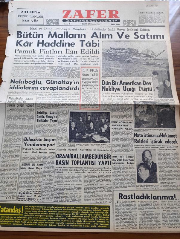 Zafer Gazetesi - 29 Kasım 1957 - Bütün Malların Alım Ve Satımı Haddine Tabi - Pamuk Fiyatları İlan Edildi - İstanbul Emniyet Müdürü Hayrettin Nakiboğlu Şemsettin Günaltay'ın İddialarını Cevaplandırdı - Bilecik'te Seçim Yenilenmiyor - Dün Bir Amerikan Dev Nakliye Uçağı Düştü - Meşhur Atom Alimi Franz Little Kadın Oluyor - Dahiliye Vekili Namık Gedik - Demokrat Parti - Bir Avrupalının Hatıraları Yazan Stefan Zweig Yazı Dizisi - Radyo Ve Haberler - Hikmet Münir Ebcioğlu - Ankara Civarında Petrol Aranacak - Hastanelerde Konserler Verilecek - Akbank - Dün Yapılan At Yarışları Neticesi - Britannica Ansiklopedi - Sputnik 3. Sükutu - Metin Oktay Naci Erdem Ve Basri Dirimlili Milli Takıma Gelemiyor - Gençlerbirliğinden Ali Pulat Hadi'ye Cevap Veriyor - Fenerbahçe Kürekçileri Klüpten Ayrılıyor adlı eser, Kitap > Süreli Yayınlar > Gazeteler > Türkiye > Genel > Günlük kategorisinde İkinci El olarak satıştadır.