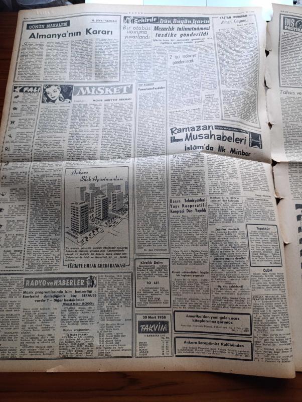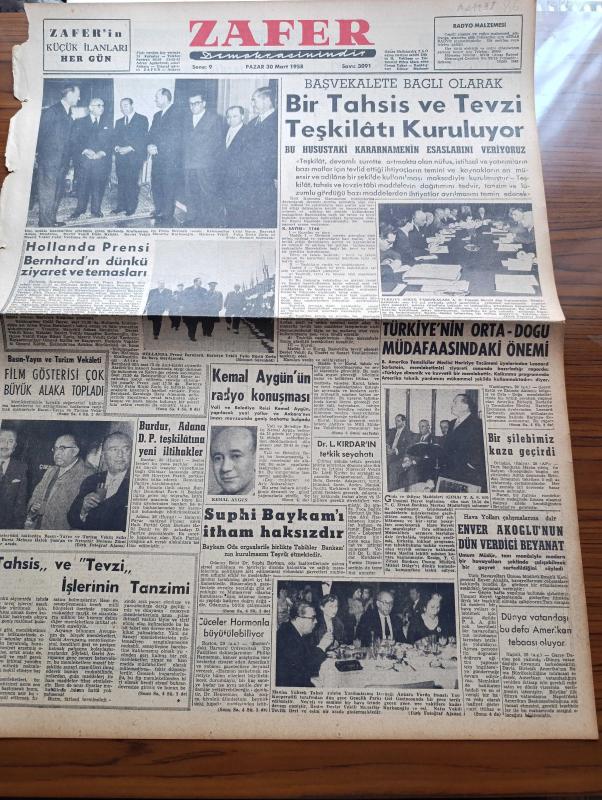Zafer Gazetesi - 30 Mart 1958 - Başvekalete Bağlı Olarak Bir Tahsis Ve Tevzi Teşkilatı Kuruluyor - Hollanda Prensi Bernhard'ın Dünkü Ziyaret Ve Temasları - Reisicumhur Celal Bayar - Başvekil Adnan Menderes - Hariciye Vekili Fatin Rüştü Zorlu - Basın Yayın Ve Turizm Vekaleti Film Gösterisi Çok Büyük Alaka Topladı - Vali Ve Belediye Reisi Kemal Aygün'ün Radyo Konuşması - Doktor Lütfü Kırdar'ın Tetkik Seyahati - Türkiye'nin Orta Doğu Müdafaasındaki Önemi - Ramazan Musahabeleri - Radyo Ve Haberler - Münir Müeyyet Bekman - Pe Re Ja Limon Çiçeği Kolonyası - Anadolu Kaleleri Bitlis Kalesi - İzmir'de Bugünkü Koşular - Feza Yolcuları Yazan Tevfik Sungur Yazı Dizisi - Sezener Orkestrası - Ankara'da Kurulacak Şeker Fabrikasının Temeli Yakında Atılıyor - Raybank - Vakıflar Bankası - Basketbolda Fenerbahçe Modaspor'u Basketbolda Yendi - Fenerbahçe Ve Galatasaray Takımları Bugün Saat 15 de Karşılaşıyor - Lefter Küçükandonyadis Taraftarın Omuzlarında - Beşiktaş Altay'ı Yendi adlı eser, Kitap > Süreli Yayınlar > Gazeteler > Türkiye > Genel > Günlük kategorisinde İkinci El olarak satıştadır.