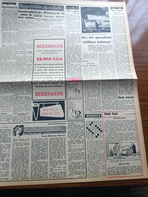 Zafer Gazetesi - 7 Şubat 1957 - Eisenhower Doktrini - Türk Arap Dostluğu - Bağdat Paktı - Kıbrıs Meselesi - Adnan Menderes'in Amerikan Ve Dünya Basınında Yayınlanan Mühim Beyanatı - Eisenhower Planı Orta Doğu'ya İstikrar Getirecektir - Kral Suud Orta Doğu Doktrinini Övüyor - Samed Ağaoğlu Dün Bütçe Encümeninde İzahat Verdi - İran Şahı Rıza Pehlevi İran Şahı Suudi Arabistan'a Davet Olundu - CHP Hatibi Nuri Sertoğlu Otomobil İftirasını Isıtarak Yine Kürsüye Getirdi - Jokey Kulübü'nün Aldığı Yeni Tedbirler - Van Gogh'un Hayatı - Süveyş Kanalı 15 Şubat'ta Açılıyor - Milli Mücadelenin İç Alemi Ve Ankara Yazan Enver Behnan Şapolyo Yazı Dizisi - Özlediğim Kadın Yazan Mükerrem Kâmil Su Yazı Dizisi - Suni Radyoaktif İzotoplar Ve Önemleri - Kızılay Kan Bankası Yetiştirme Yurdundan 35 Hanım Mezun Oldu - Viyana Tiyatrosu - Konya Ovasında Yeniden İki Baraj Yapılıyor - Etna Yanardağı Yeniden Faaliyete Başladı - Boks Tarihi Ve Bugünkü Modern Tekniğin Esasları - Turgay Şeren Ordu Takımında Yok, Zeki Rıza Sporel tarafından kaleme alınmıştır. Zafer Gazetesi - 7 Şubat 1957 - Eisenhower Doktrini - Türk Arap Dostluğu - Bağdat Paktı - Kıbrıs Meselesi - Adnan Menderes'in Amerikan Ve Dünya Basınında Yayınlanan Mühim Beyanatı - Eisenhower Planı Orta Doğu'ya İstikrar Getirecektir - Kral Suud Orta Doğu Doktrinini Övüyor - Samed Ağaoğlu Dün Bütçe Encümeninde İzahat Verdi - İran Şahı Rıza Pehlevi İran Şahı Suudi Arabistan'a Davet Olundu - CHP Hatibi Nuri Sertoğlu Otomobil İftirasını Isıtarak Yine Kürsüye Getirdi - Jokey Kulübü'nün Aldığı Yeni Tedbirler - Van Gogh'un Hayatı - Süveyş Kanalı 15 Şubat'ta Açılıyor - Milli Mücadelenin İç Alemi Ve Ankara Yazan Enver Behnan Şapolyo Yazı Dizisi - Özlediğim Kadın Yazan Mükerrem Kâmil Su Yazı Dizisi - Suni Radyoaktif İzotoplar Ve Önemleri - Kızılay Kan Bankası Yetiştirme Yurdundan 35 Hanım Mezun Oldu - Viyana Tiyatrosu - Konya Ovasında Yeniden İki Baraj Yapılıyor - Etna Yanardağı Yeniden Faaliyete Başladı - Boks Tarihi Ve Bugünkü Modern Tekniğin Esasları - Turgay Şeren Ordu Takımında Yok adlı eser Türkçe dilindedir.