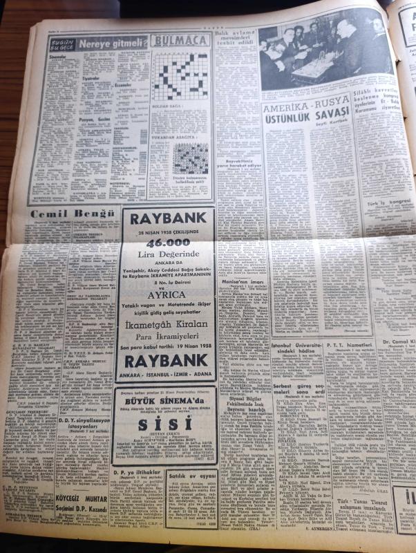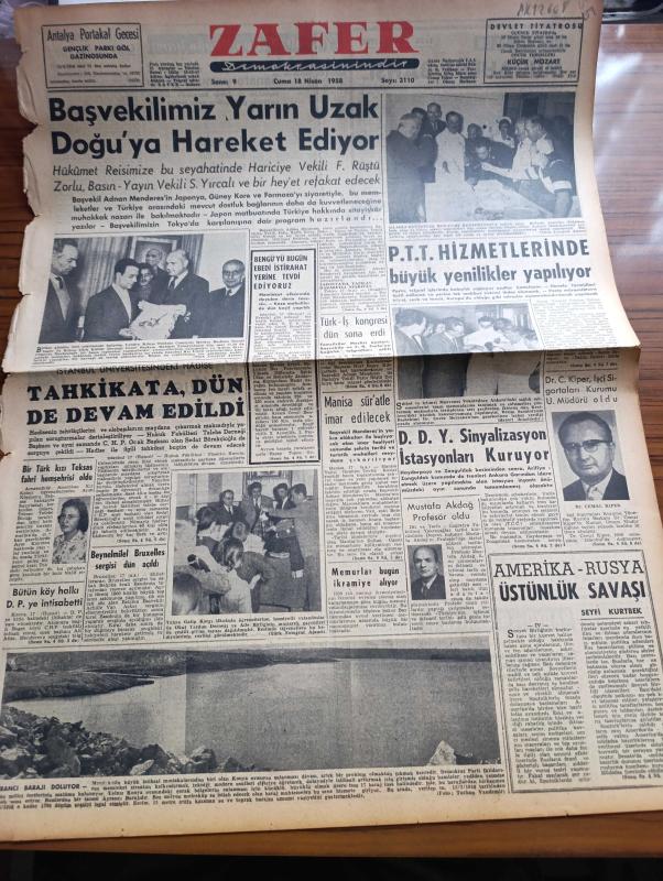 Zafer Gazetesi - Turkish Newspaper - 18 Nisan 1958 - Başvekilimiz Adnan Menderes yarın uzakdoğuya hareket ediyor - Londra Kıbrıs Türktür cemiyeti Merkez Başkanı Necati Sager ve Kıbrıs Türk kültür derneği Genel Başkanı Mehmet Ertuğruloğlu basın toplantısı yaptı fotoğraf - Ayşe Köymen Teksas Fahri hemşehrisi oldu - Türk İş Kongresi dün sona erdi - Devlet demiryolları sinyalizasyon istasyonları kuruyor - Doktor Cemal Kiper işçi sigortaları kurumu umum müdürü oldu - Amerika Rusya üstünlük savaşı yazan Seyfi Kurtbek - Mustafa Akdağ Profesör oldu - Ayrancı barajı doluyor fotoğraf - Radyo ve haberler yazan Hikmet Münir Ebcioğlu - Ramazan musahabeleri yazan Ragıp Akyavaş - Misket yazan Münir Müeyyet Bekman yazı dizisi - NATO'nun savunma gücü artırılacak - İzmir'de yapılan at yarışları - Demokrat Parti İstanbul il başkanı Dr Cemil Bengü'nün vefatı - Atatürk'e ait film aranıyor - Mardin gecesi - serbest güreş seçmeleri sona erdi - siyasal bilgiler fakültesinde inek Bayramı hazırlığı - Fenerbahçe adlı eser, Kitap > Süreli Yayınlar > Gazeteler > Türkiye > Genel > Günlük kategorisinde İkinci El olarak satıştadır.