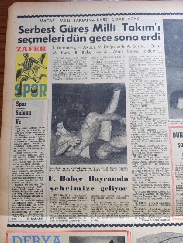 Zafer Gazetesi - Turkish Newspaper - 18 Nisan 1958 - Başvekilimiz Adnan Menderes yarın uzakdoğuya hareket ediyor - Londra Kıbrıs Türktür cemiyeti Merkez Başkanı Necati Sager ve Kıbrıs Türk kültür derneği Genel Başkanı Mehmet Ertuğruloğlu basın toplantısı yaptı fotoğraf - Ayşe Köymen Teksas Fahri hemşehrisi oldu - Türk İş Kongresi dün sona erdi - Devlet demiryolları sinyalizasyon istasyonları kuruyor - Doktor Cemal Kiper işçi sigortaları kurumu umum müdürü oldu - Amerika Rusya üstünlük savaşı yazan Seyfi Kurtbek - Mustafa Akdağ Profesör oldu - Ayrancı barajı doluyor fotoğraf - Radyo ve haberler yazan Hikmet Münir Ebcioğlu - Ramazan musahabeleri yazan Ragıp Akyavaş - Misket yazan Münir Müeyyet Bekman yazı dizisi - NATO'nun savunma gücü artırılacak - İzmir'de yapılan at yarışları - Demokrat Parti İstanbul il başkanı Dr Cemil Bengü'nün vefatı - Atatürk'e ait film aranıyor - Mardin gecesi - serbest güreş seçmeleri sona erdi - siyasal bilgiler fakültesinde inek Bayramı hazırlığı - Fenerbahçe, Zühtü Hilmi Velibeşe tarafından kaleme alınmıştır. Zafer Gazetesi - Turkish Newspaper - 18 Nisan 1958 - Başvekilimiz Adnan Menderes yarın uzakdoğuya hareket ediyor - Londra Kıbrıs Türktür cemiyeti Merkez Başkanı Necati Sager ve Kıbrıs Türk kültür derneği Genel Başkanı Mehmet Ertuğruloğlu basın toplantısı yaptı fotoğraf - Ayşe Köymen Teksas Fahri hemşehrisi oldu - Türk İş Kongresi dün sona erdi - Devlet demiryolları sinyalizasyon istasyonları kuruyor - Doktor Cemal Kiper işçi sigortaları kurumu umum müdürü oldu - Amerika Rusya üstünlük savaşı yazan Seyfi Kurtbek - Mustafa Akdağ Profesör oldu - Ayrancı barajı doluyor fotoğraf - Radyo ve haberler yazan Hikmet Münir Ebcioğlu - Ramazan musahabeleri yazan Ragıp Akyavaş - Misket yazan Münir Müeyyet Bekman yazı dizisi - NATO'nun savunma gücü artırılacak - İzmir'de yapılan at yarışları - Demokrat Parti İstanbul il başkanı Dr Cemil Bengü'nün vefatı - Atatürk'e ait film aranıyor - Mardin gecesi - serbest güreş seçmeleri sona erdi - siyasal bilgiler fakültesinde inek Bayramı hazırlığı - Fenerbahçe adlı eser Türkçe dilindedir.