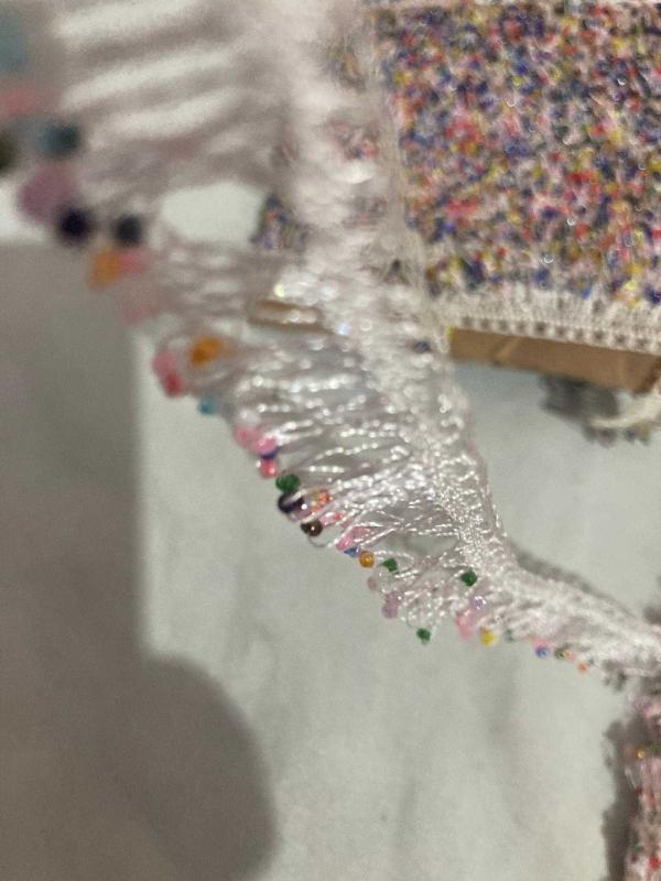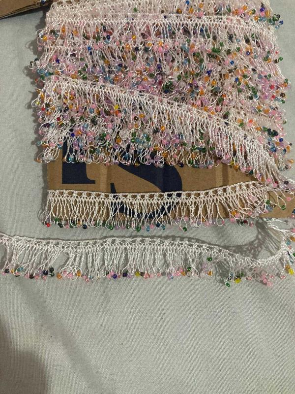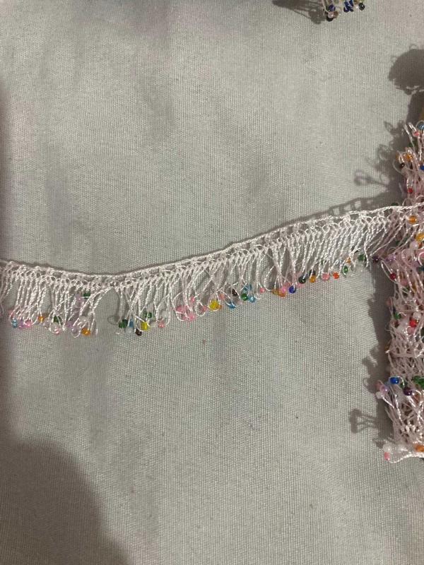 El emeği ile hazırlanmış, yoğun renkli boncuk detaylı firkete oyası. Toplam uzunluk 4 metreden fazladır. 🪡 Teknik: Firkete oyası 🌈 Detay: Renkli cam boncuk işleme 📏 Uzunluk: 4 metre + 🎀 Durum: Yeni / kullanılmamış Gösterişli ve ince işçiliği ile dikkat çeken bu parça, dönemsel değil zamansız bir el sanatıdır. Çeyizlik, tekstil süsleme, koleksiyon veya dekoratif kullanım için uygundur.