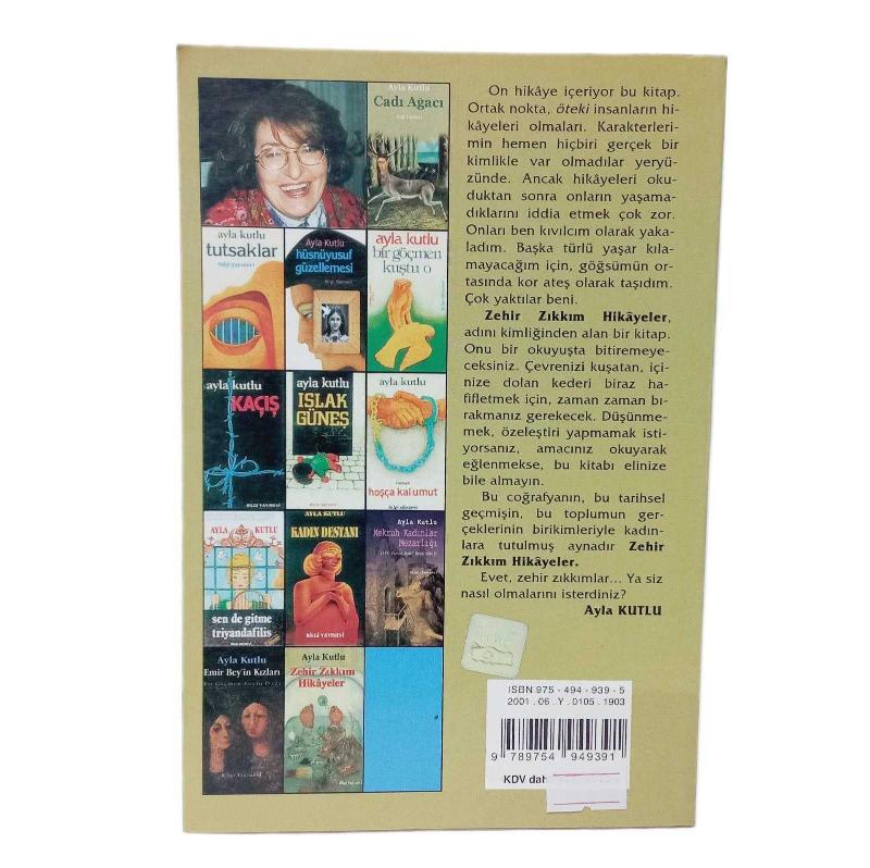 "Zehir Zıkkım Hikâyeler", adını kimliğinden alan bir kitap. Onu bir okuyuşta bitiremeyeceksiniz. Çevrenizi kuşatan, içinize dolan kederi biraz hafifletmek için, zaman zaman bırakmanız gerekecek. Düşünmemek, özeleştiri yapmamak istiyorsanız, bu kitabı elinize almayın. Tersi söz konusuysa... Ayla Kutlu’nun bu coğrafyadan süzüp yansıttığı dünyaya hoş geldiniz