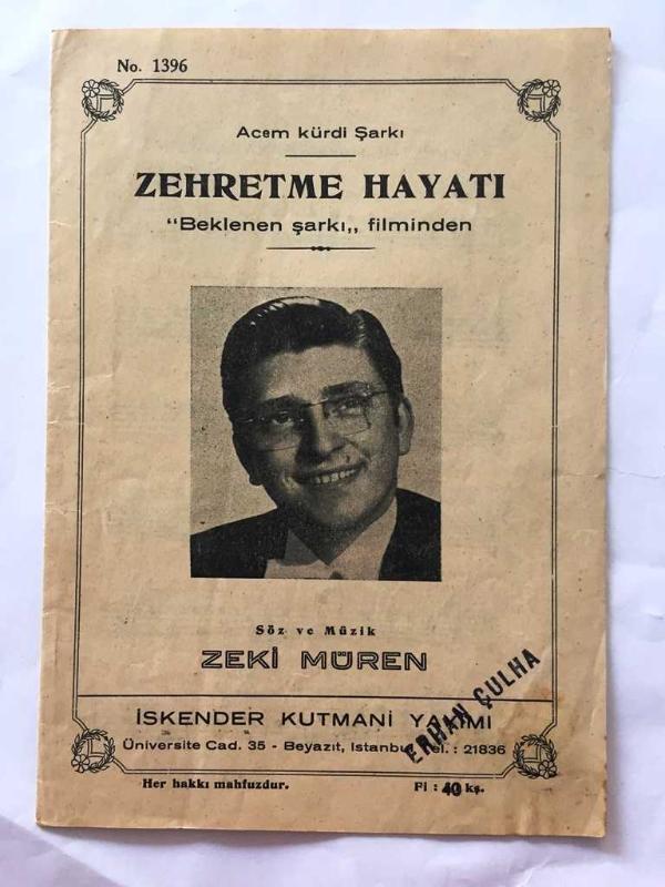 Zeki Müren'in ''Beklenen Şarkı'' Filminden Zehretme Hayatı Şarkısının Notaları - Acem Kürdi Şarkı - İskender Kutmani Yayımı (1396 No - 40 Kuruş) - 20,5 x 14 cm Ebadında - 4 Sayfa - Orijinal, Dönemine Ait, en son 1 yıl önce güncellenmiştir.