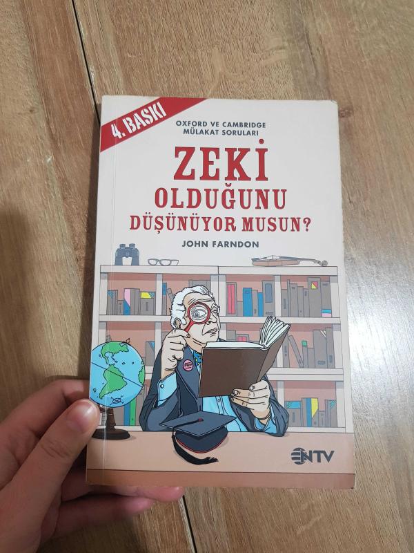 Zeki Olduğunu Düşünüyor Musun? - Oxford ve Cambridge Mülakat Soruları, John Farndon tarafından kaleme alınmıştır. Kitap 2010 yılında NTV Yayınları tarafından [İstanbul] yayınlanmıştır. Bu baskının çevirisi Nurettin Elhüseyni tarafından yapılmıştır. 224 sayfadır. Sayfa bilgisi 224 olarak belirtilmiştir. Zeki Olduğunu Düşünüyor Musun? - Oxford ve Cambridge Mülakat Soruları adlı eser Türkçe dilindedir.