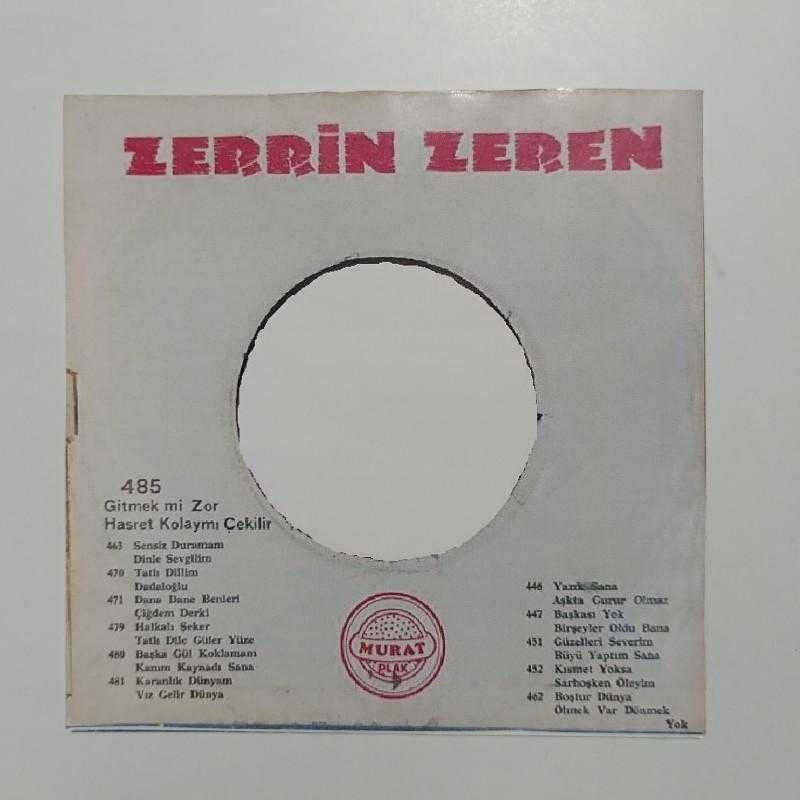 şarkıcı/grup- Zerrin ZEREN şarkılar -Halkalı şeker - tatlı dile güler yüze tür -thm baskı/press - plak -7,5/10 kapak -BASKI KAPAK (ORJİNAL KAPAK DEĞİLDİR) MPN no -MI-479 bilgi -