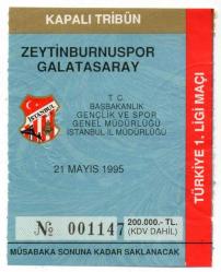 Zeytinburnuspor 3-7 Galatasaray - Futbol Maçı Bileti - 21 Mayıs 1995 - İstanbul Ali Sami Yen Stadı